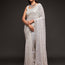 Beautiful Pearl White Sequined Georgette Party Wear Saree With Unstitched Blouse