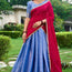 Complementing the lehenga is the matching royal blue unstitched blouse, also made from kanchipuram silk, allowing for personalized tailoring to suit your style.