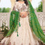 Adding a refreshing contrast, the set includes a stunning green georgette dupatta highlighted with traditional Bandhani print and finished with an attractive sequin lace border. The vibrant hue of the dupatta breathes life into the soft ivory tones, creating a beautiful balance of elegance and festive vibrance.