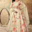 The matching beige choli, also made of organza, continues the floral print work, creating a cohesive and stylish look. This beautifully detailed choli truly enhances the ensemble's overall impact.