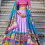 Paired with a pink tussar silk choli featuring vibrant digital print work, the ensemble blends contemporary charm with traditional elegance. The lively color contrast adds freshness to the look, making it both graceful and eye-catching.