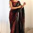 To enhance your look, pair the saree with a matching black satin banglori blouse, adorned with intricate sequin embroidery that complements the saree's allure. This chic combination accentuates your silhouette while adding a refined touch to your overall appearance.