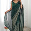 Celebrate your special occasions in style with our green georgette saree, embellished with exquisite heavy designer sequin embroidery that promises to captivate at any event. This saree is perfect for receptions or festive gatherings and embodies timeless charm and elegance, ensuring you make a memorable impression.