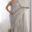 Stunning Grey Sequins Georgette Party Wear Saree With Blouse