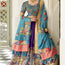 Completing the look is a matching teal blue dola silk dupatta, embellished with kalamkari prints, zari weaving borders, and tassels on both sides. This refined finishing touch adds depth and traditional charm, making the set ideal for weddings, festivals, and grand celebrations.