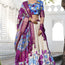 A striking purple dola silk dupatta completes the outfit, beautifully highlighted with kalamkari prints, zari weaving borders, and tassels on both sides. This refined accessory enhances the ensembleās cultural charm, making it a standout choice for grand events and celebrations.