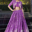 Awesome Purple Printed Tussar Silk Party Wear Crop Top Lehenga With Jacket