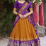 A matching purple tussar silk dupatta finishes the look, adorned with traditional Patola prints, Gota Patti lace borders, and playful tassels. This vibrant accessory adds depth and cultural richness, making the outfit ideal for grand occasions and traditional festivities.