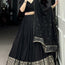Completing the look is a matching black chanderi dupatta, featuring sequin embroidery buttis and a lace border. Measuring 2.5 meters, this elegant accessory adds depth and charm, making it ideal for weddings, festivals, and grand traditional occasions.