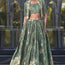 Lavish Bottle Green Floral Print Tussar Silk Crop Top Lehenga With Jacket