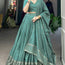 Completing the set is a matching sea green chanderi dupatta, featuring sequin embroidery buttis and a fine lace border. Measuring 2.5 meters, this elegant layer adds charm and depth, making it a stunning choice for weddings, festivals, and traditional celebrations.