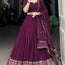 Drape yourself in regal elegance with this wine stitched lehenga, crafted from pure chanderi fabric and adorned with a rich zari weaving border. With a 3.30-meter flair, full stitched canvas, and soft micro cotton lining, it creates a graceful silhouette ideal for weddings and festive occasions.