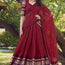 A coordinating 2.5-meter red chanderi dupatta completes the set, designed with a plain body and an elegant zari weaving border. This polished finishing touch adds richness and grace, making the outfit ideal for cultural gatherings and festive occasions.