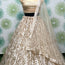 The net lehenga features a luxurious net overlay with resplendent thread embroidery in a delicate vine pattern, enhancing its graceful and regal appeal. The voluminous flare gives it a princess-like silhouette, perfect for weddings, receptions, or festive functions.