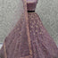 This net lehenga choli in a charming mauve-purple shade is crafted with luxurious embroidery that adds depth and richness to its look. The lehenga is adorned with a mix of floral motifs and diamond-checkered patterns, detailed with sequins and threads in golden and pink hues.