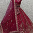 Designed for weddings and grand celebrations, this pink bridal lehenga is adorned with intricate handwork, shimmering sequin details, zari embroidery, and fancy floral embellishments. Semi-stitched to fit up to 42 inches, it offers a regal silhouette to make you feel like a true princess.