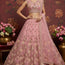 This ethereal pink lehenga is a vision of feminine grace and romantic elegance. Crafted from soft net fabric, the ensemble is adorned with intricate floral embroidery in pastel tones of gold and blush, creating a delicate play of texture and shimmer.