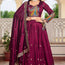 This luxurious wine color silk lehenga, intricately embellished with delicate thread embroidery and dazzling sequin work. The deep, rich tone of the silk fabric adds a regal charm, making it a stunning choice for weddings, receptions, and grand festive events. The embroidery and sequins come together to create a harmonious blend of tradition and glamour.