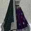 The georgette lehenga showcases a rich purple base adorned with scattered woven motifs and detailed silver zari work along the broad hemline, creating a striking border highlighted with traditional floral and paisley patterns. The craftsmanship brings an ethnic grandeur, making it ideal for festive and wedding occasions.