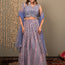 This lavender lehenga set beautifully combines festive charm with refined craftsmanship. The semi-stitched lehenga features soft striped fabric that flows gracefully, offering a voluminous flair with subtle shimmer — ideal for weddings and celebrations. Its light lavender hue adds a dreamy sophistication, making it both timeless and trendy.