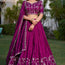 Embrace regal elegance with this wine color silk stitched lehenga set, designed to leave a lasting impression. The lehenga features stunning sequins and intricate thread embroidery work, thoughtfully placed to highlight the richness of the silk fabric. A graceful lace border frames the hemline, adding a sophisticated touch to its flowing silhouette.
