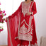 Beautiful Red Embroidered Vichitra Silk Wedding Wear Palazzo Suit