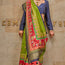 Completing this captivating ensemble is a matching unstitched navy-blue blouse, crafted from premium silk fabric. Together, they create a refined and traditional look, allowing for graceful draping to make you the center of attention at any celebration.