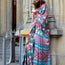 Paired with a matching silk blouse featuring similar print designs, this ensemble radiates charm and sophistication.