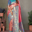 Paired with a matching blue banarasi silk blouse, adorned with the same exquisite zari work, it creates a perfectly coordinated and elegant ethnic ensemble.
