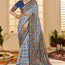 Stunning Sky-Blue Ikkat Printed Silk Festival Wear Saree With Blouse