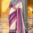 This saree showcases the elegance of cotton fabric with a contemporary touch. The off-white base is beautifully complemented by a bold magenta border, enriched with intricate woven patterns that enhance its ethnic charm. The fabric drapes gracefully, reflecting both comfort and sophistication for festive and formal occasions.