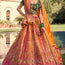 Complementing the ensemble with a burst of traditional flair, this similar color silk dupatta features classic zari weaving that exudes timeless charm. Intricately detailed with fine thread work and shimmering sequins, it adds a layer of elegance and festive sparkle. The heavy lace border work enhances its regal appeal, making it a perfect finishing touch for weddings, sangeets, or grand celebrations.