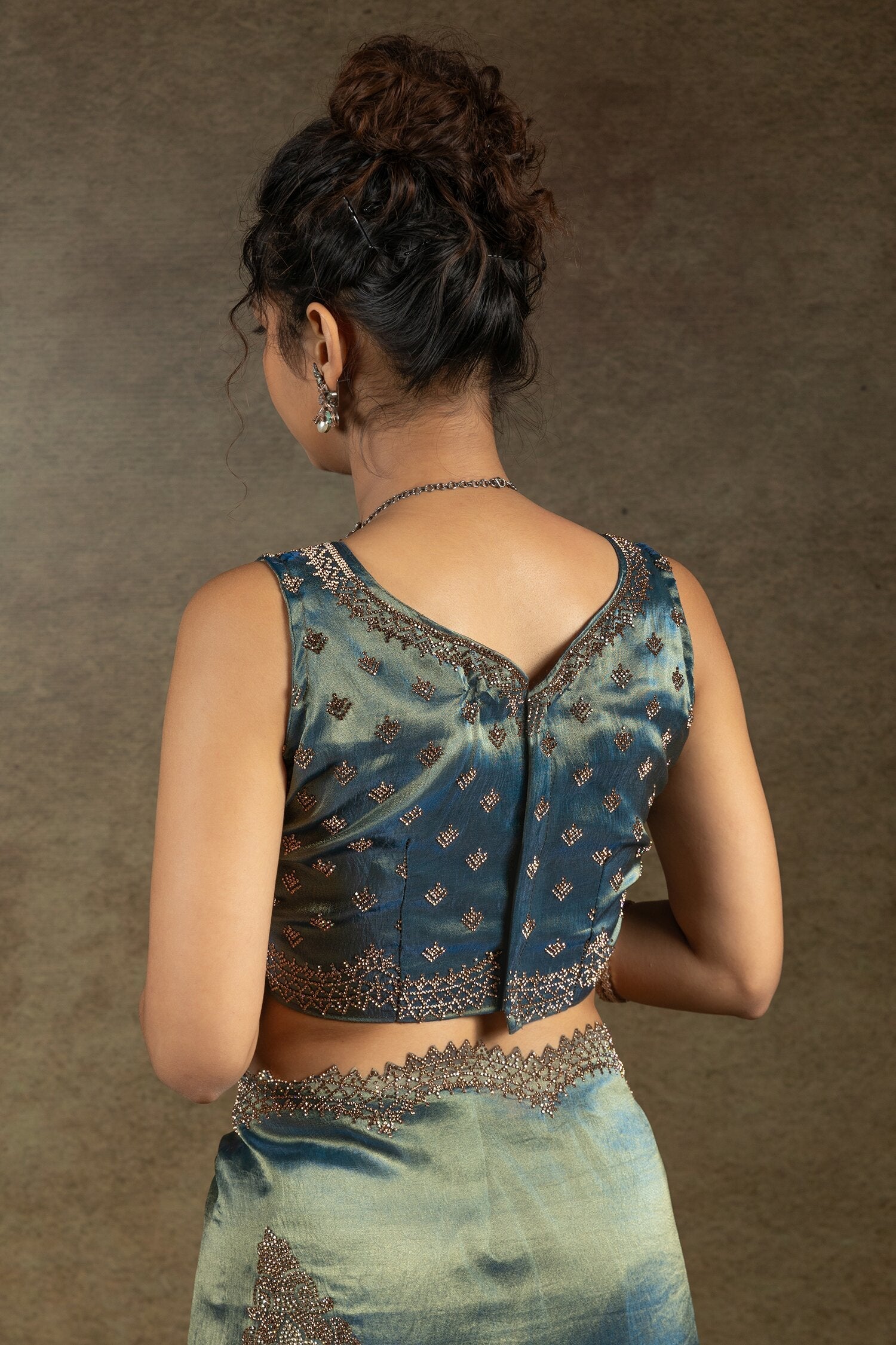 Drape yourself in grace with this dazzling dusty green organza saree, featuring intricate handwork jerquen and a beautifully crafted border. Perfect for weddings, functions, or festive events, it offers a timeless and elegant appeal.