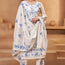 The matching cotton dupatta is crafted in a similar ivory-toned fabric and adorned with blue floral embroidery all over, mirroring the motifs on the kurta and adding harmony to the overall look. It is further edged with dainty lace borders, enhancing its traditional charm.