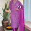 Dazzling Purple Printed Traditional Pant Suit With Chinon Dupatta