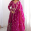 Make a striking impression in this pink georgette anarkali suit, featuring elegant sequins and thread embroidery. Fully stitched with a 52-inch top length, it's a ready-to-wear choice for festive celebrations and traditional events.