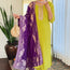Finally, the delicate purple viscose jacquard dupatta, adorned with zari weaving, completes this refined ensemble. This tasteful addition enhances your presence, allowing you to shine with confidence and grace in any setting.