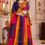 This vibrant multi-color cotton lehenga choli is designed with a perfect blend of tradition and festive charm. The lehenga is crafted in flowing cotton fabric, showcasing bold panels of pink, mustard, and navy that come together in a flared silhouette. The gathered pleats give it volume and movement, making it an ideal choice for Garba and Navratri nights.