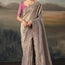 This stunning saree comes in a soft beige-gold shade with a rich metallic sheen that adds regal elegance. The intricate sequin and thread embroidery along the scalloped border and scattered motifs throughout the drape enhance its luxurious festive charm.