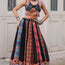 This stunning lehenga choli set is crafted in georgette fabric, offering a perfect blend of tradition and vibrancy. The lehenga features multicolor printed panels in striking hues, beautifully balanced with bold black inserts that enhance its festive charm. The broad border with intricate embroidery adds richness, making it a statement outfit for Navratri and festive occasions.