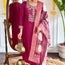 Complementing your ensemble is a luxurious burgundy jacquard silk dupatta, adorned with designer prints. This elegant accessory not only enhances the overall look but also offers versatility, allowing you to express your personal style while turning heads wherever you go.