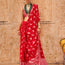 This red georgette saree with intricate zari weaving work is the epitome of elegance and traditional charm, perfect for weddings, festivals, or any grand occasion. The rich red hue, combined with the delicate shimmer of zari, creates a captivating look that’s both regal and timeless.