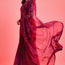 The saree with a solid deep-magenta blouse that has a contemporary back cut design, complementing the saree’s vibrant hues. the combination of rich color tones, delicate sparkle, and sheer draping creates a look that’s both elegant and modern, ideal for making a statement at special occasions.