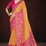 To complete the look, a complementing pink banarasi silk blouse showcases matching weaving work, ensuring a cohesive appearance. The unstitched blouse material allows for personalized tailoring, guaranteeing a perfect fit that accentuates your figure. With this ensemble, you'll make a lasting impression at any festive gathering, radiating style and sophistication.