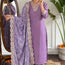 Completing this magnificent ensemble is an elegant purple silk blend dupatta, adorned with delicate sequins and intricate prints. This accessory not only enhances your outfit but also showcases your unique style, making heads turn wherever you go. Pair it with tasteful jewelry to elevate your look and fully embrace the joy of every celebration.