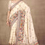 Complementing this elegant saree is a matching beige pashmina silk blouse, also adorned with beautiful handwork motifs and crystal detailing. Its chic design adds an extra layer of refinement, making it an ideal selection for gatherings and festivities, ensuring you look both graceful and stylish on any occasion.