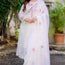 Elevate your celebrations with an exquisite white georgette suit that beautifully marries elegance and sophistication. The rich, intricate embroidery work imbues this outfit with a glamorous touch, ensuring you captivate attention at any event you grace with your presence.