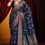 Pretty Navy-Blue Paisley Printed Tussar Silk Event Wear Saree