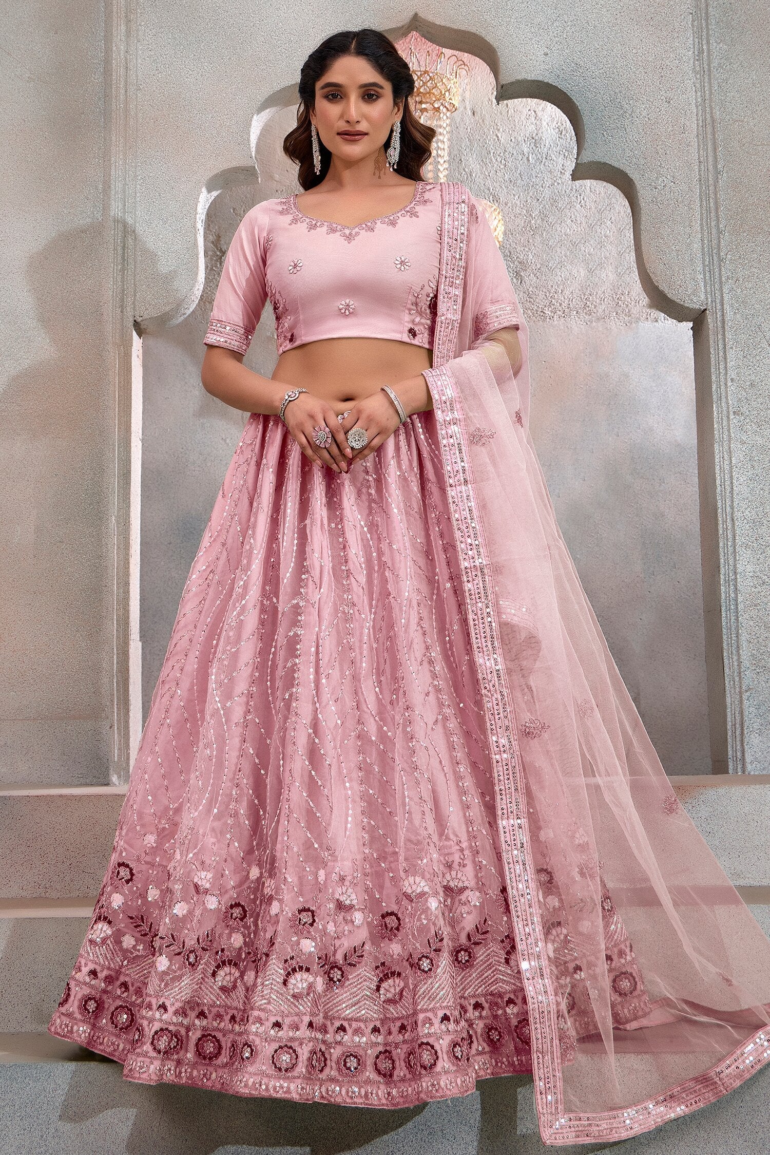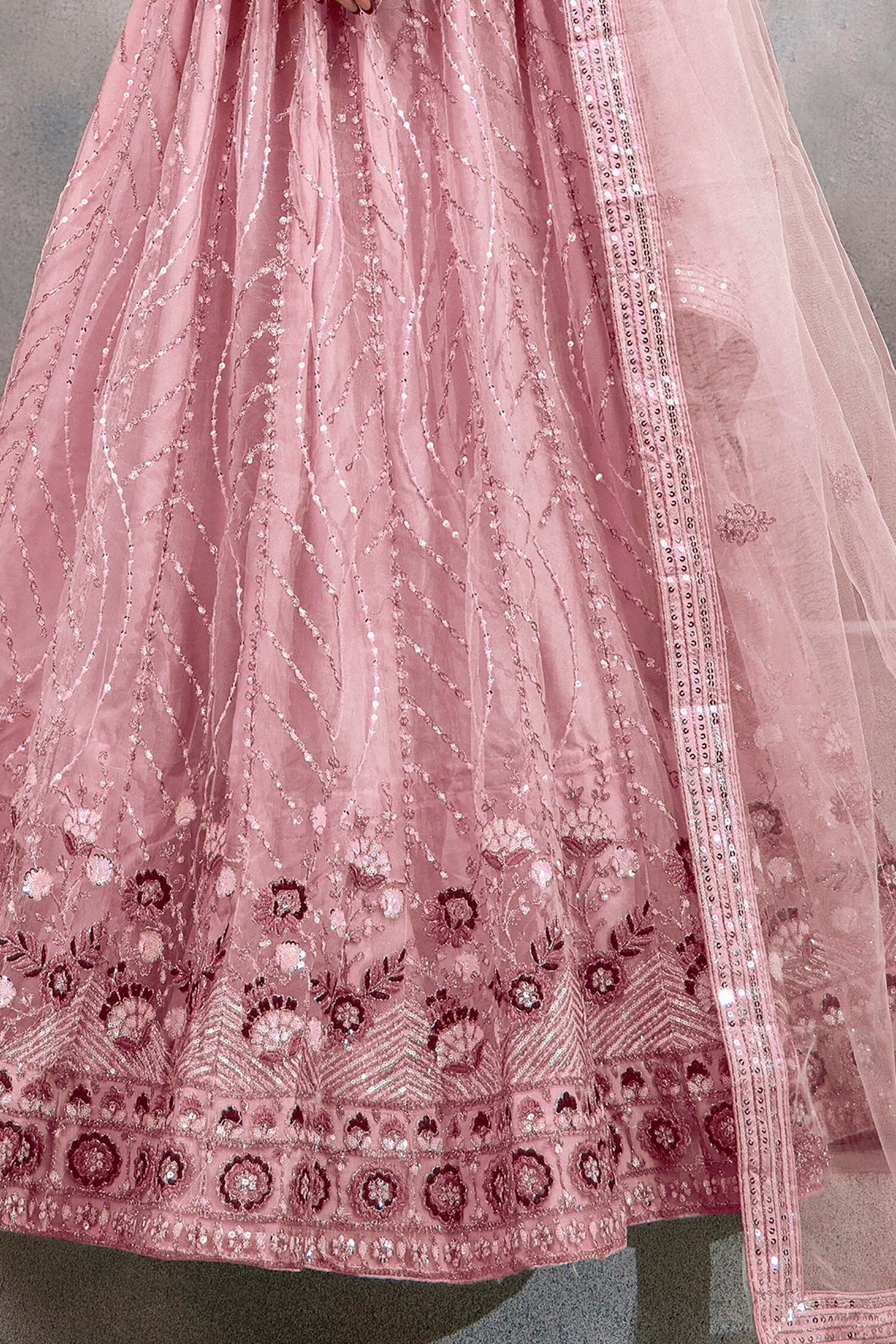 Wonderful Dark Peach Sequins Net Designer Lehenga Choli With Dupatta